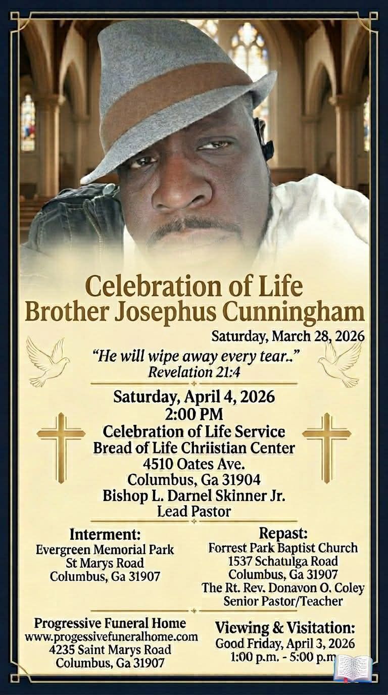 Mr. Josephus Joel Cunningham passed away on Saturday, March 28, 2026, at the age of 49. He was born on August 7, 1976, to Josephine Johnson Cunningham and the late Joseph Cunningham in Ft. Benning, GA.