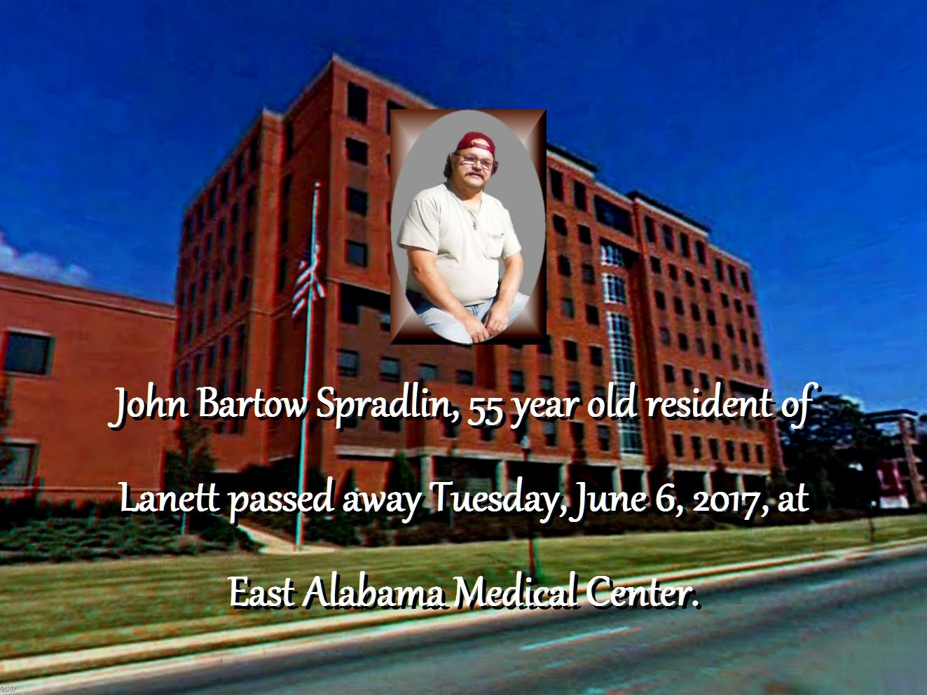 John Bartow Spradlin, 55 year old resident of Lanett passed away Tuesday, June 6, 2017, at East Alabama Medical Center.
